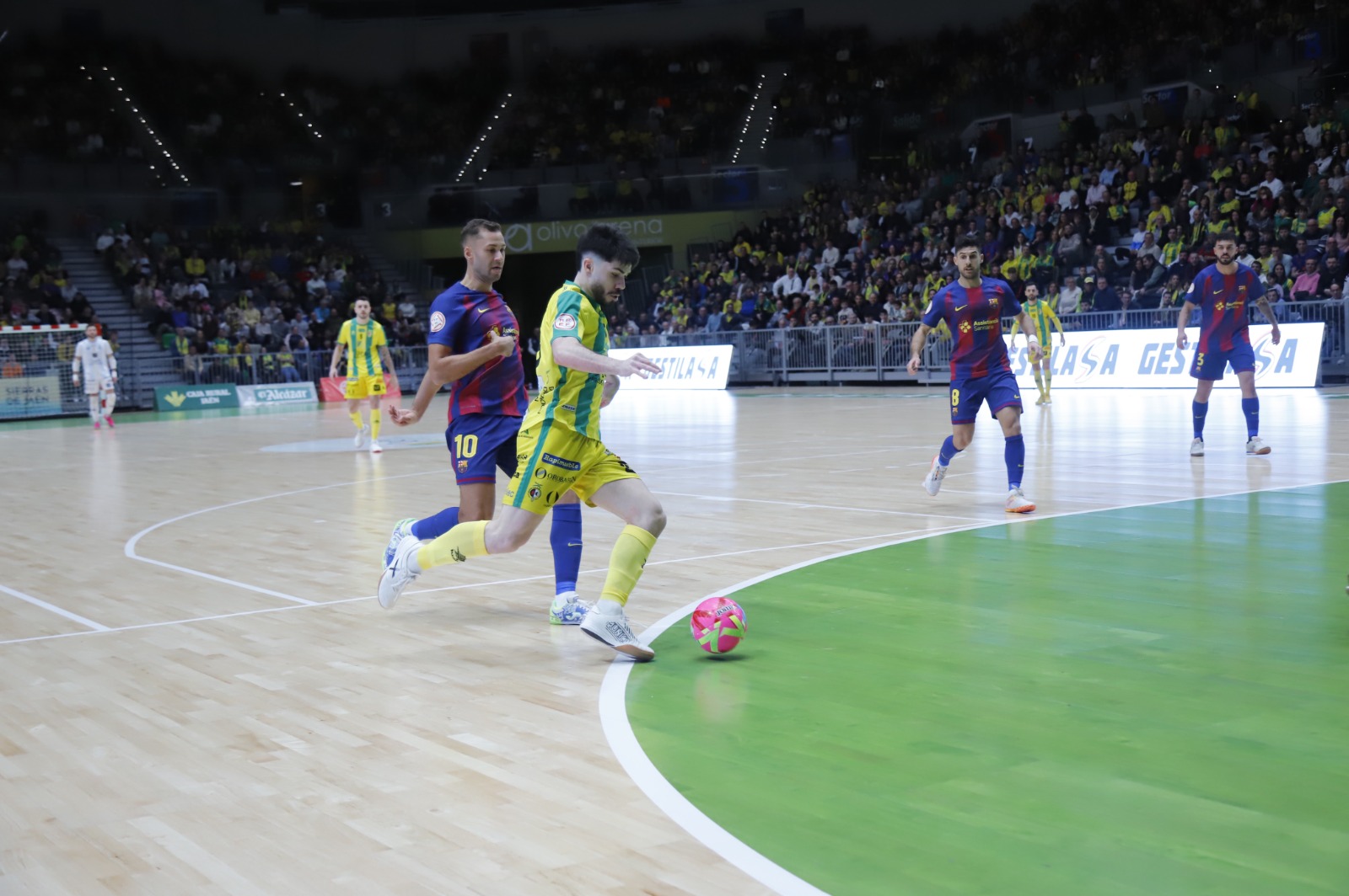 O início da primeira parte foi claramente favorável ao ElPozo. Com fluidez ofensiva e pressão alta, os murcianos criaram várias situações de perigo. Dener avisou primeiro, seguido de Marcel, muito ativo na pressão, enquanto Ligeiro esteve perto do golo aos 3 minutos. Gadeia, na sequência de uma falta após cartão amarelo a Raya, voltou a testar a baliza adversária. O ElPozo atravessava o seu melhor momento, reforçado por um remate de Bebe ao poste desde a sua própria área.