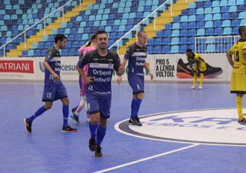 Dieguinho apontou três golos na vitória do Joinville sobre o Pato e fica a um empate da semifinal da LNF