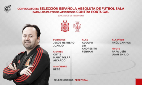 Para os jogos de caracter particular diante de Portugal agendados para os dias 23 e 24 de Setembro, em Matosinhos, o Selecionador Nacional de Espanha,