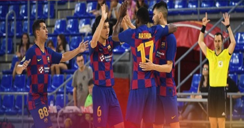 Um hat-trick de Ferrão e os golos de Esquerdinha, Rivillos, Dyego e Adolfo permitiram que os Blaugrana vencessem o seu segundo particular da temporad