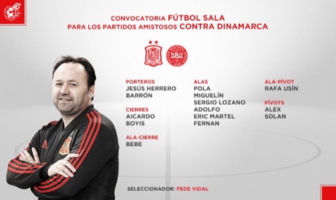 O novo selecionador Espanhol, Federico Vidal, anunciou os convocados da Espanha, para os encontros particulares frente à Dinamarca, que se irão real