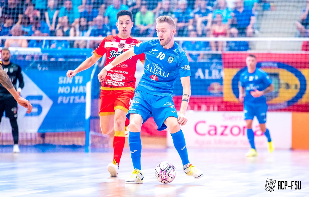 O Viña Albali Valdepeñas apurou-se para as meias finais da Liga Espanhola de Futsal, depois de vencer esta noite, o Jimbee Cartagena na segunda mão