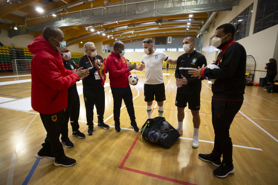 Seleção Brasileira de Futsal: CBF faz doação de bolas à delegação de Angola