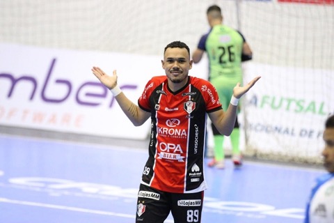 Dieguinho apontou três golos na vitória do Joinville sobre o Pato e fica a um empate da semifinal da LNF