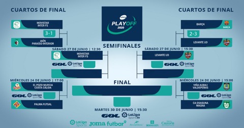 Inter-Jaén e Barça-Levante abrem os Quartos de Final dos Play-Off da LNFS